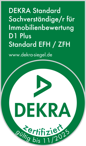 Mit dem zertifizierten Abschluss und der Anerkennung als Sachverständiger der DEKRA kann ich für Sie komplexe Gutachtenaufträge zur Ermittlung des Verkehrswertes und des Marktwertes für bebaute und unbebaute Grundstücke erstellen. Als DEKRA zertifizierter Sachverständige für Immobilienbewertung gewährleiste ich hohe Qualitätsstandards und dass garantiert Ihnen, dass Sie die Bewertung Ihrer Immobilie in gute und geprüfte Hände legen.